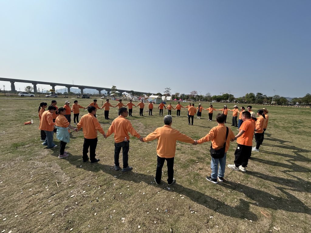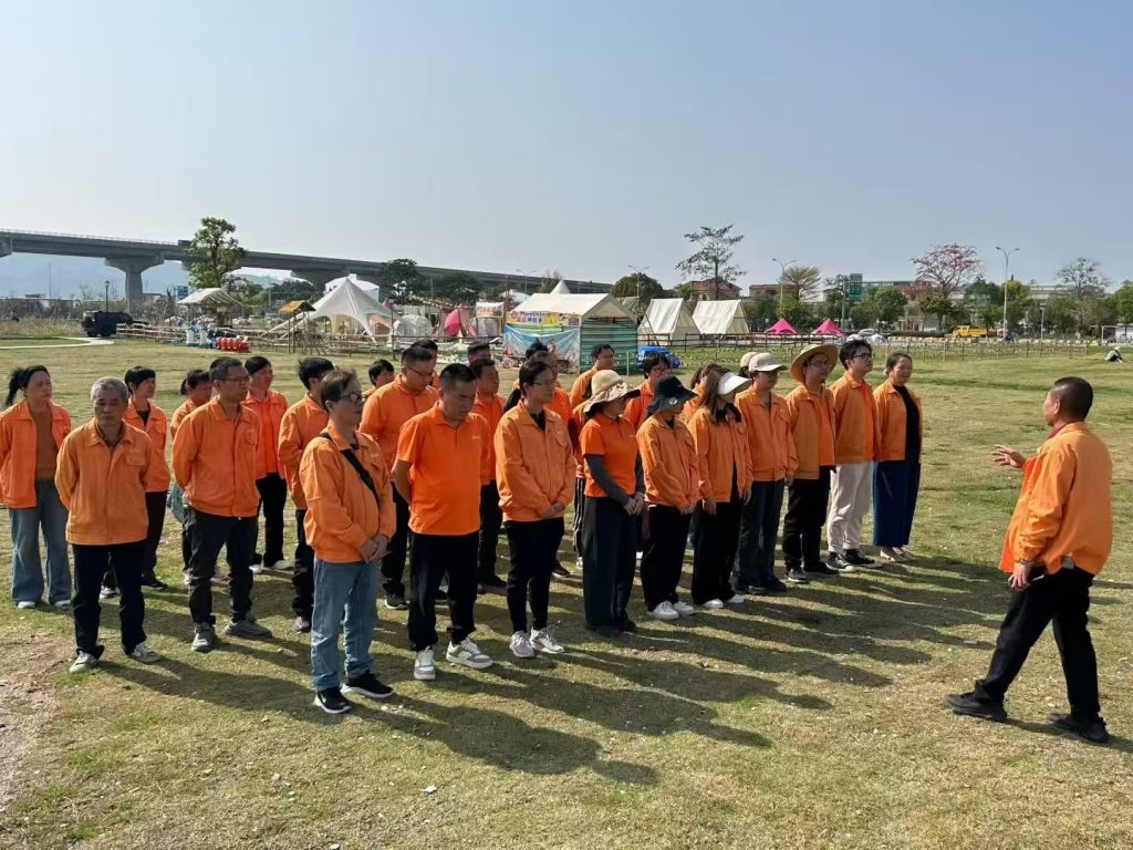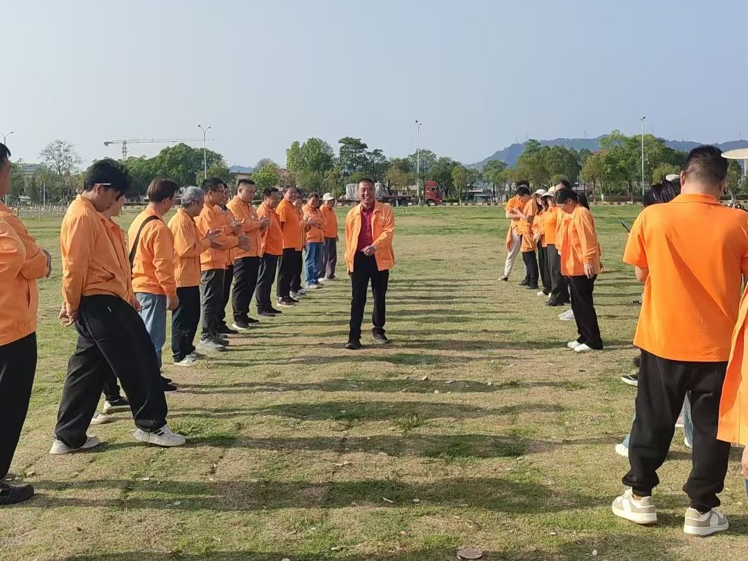 大家统一穿着橙色的工服,显得格外醒目。脸上洋溢着期待和兴奋的笑容,仿佛已经迫不及待地想要投入到这次活动中去。在草坪上,我们开始了一系列的团队游戏。